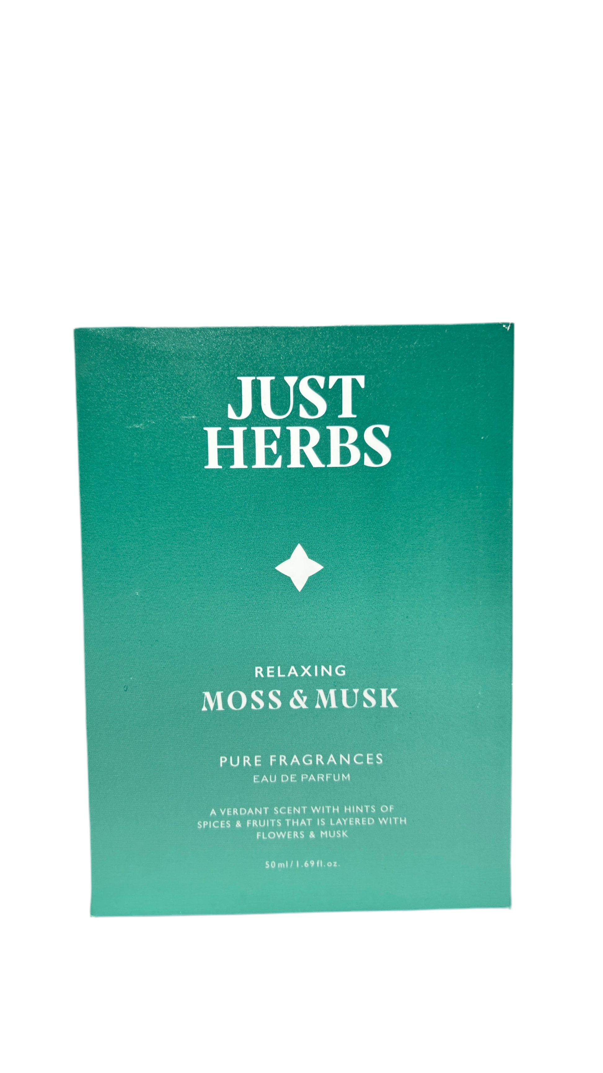 Just Herbs Perfume| Relaxing Moss & Musk | ⭐ 4.5 | Size - 50 Ml RELAXING | SPICY, FLORAL & WOODY | LONG-LASTING | PHTHALATE-FREE FORMULA | UNISEX | CRAFTED WITH GRAIN DERIVED ALCOHOL Vegan Grain Derived Alcohol Long Lasting