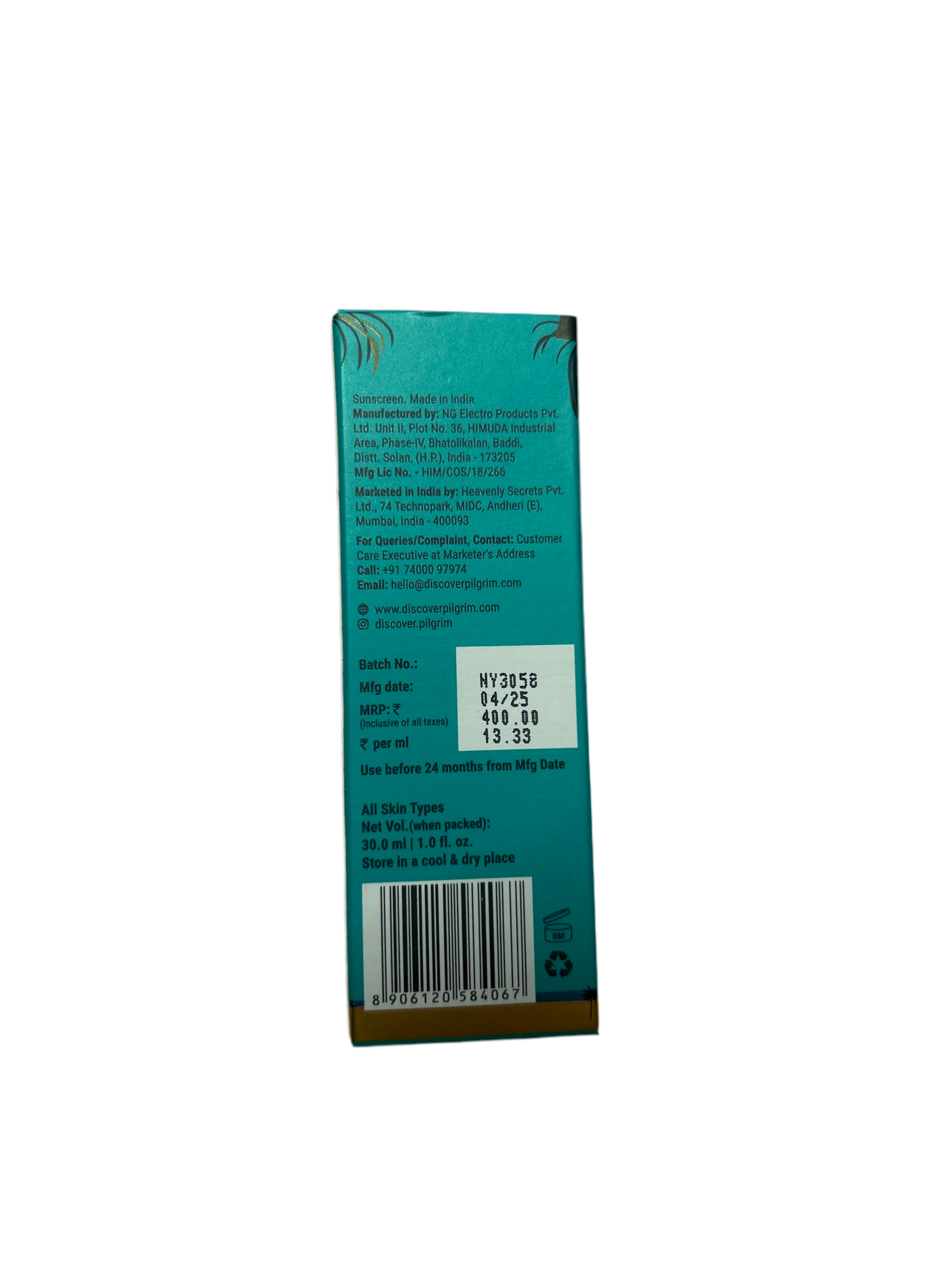 Pilgrim White lotus SUNSCREEN SERUM SPF 30 PA+++ for women & men with Hyaluronic acid & CICA | Oil & silicon free, Broad spectrum, Non-greasy, No white cast | Korean skin care | All skin types | 30 ml