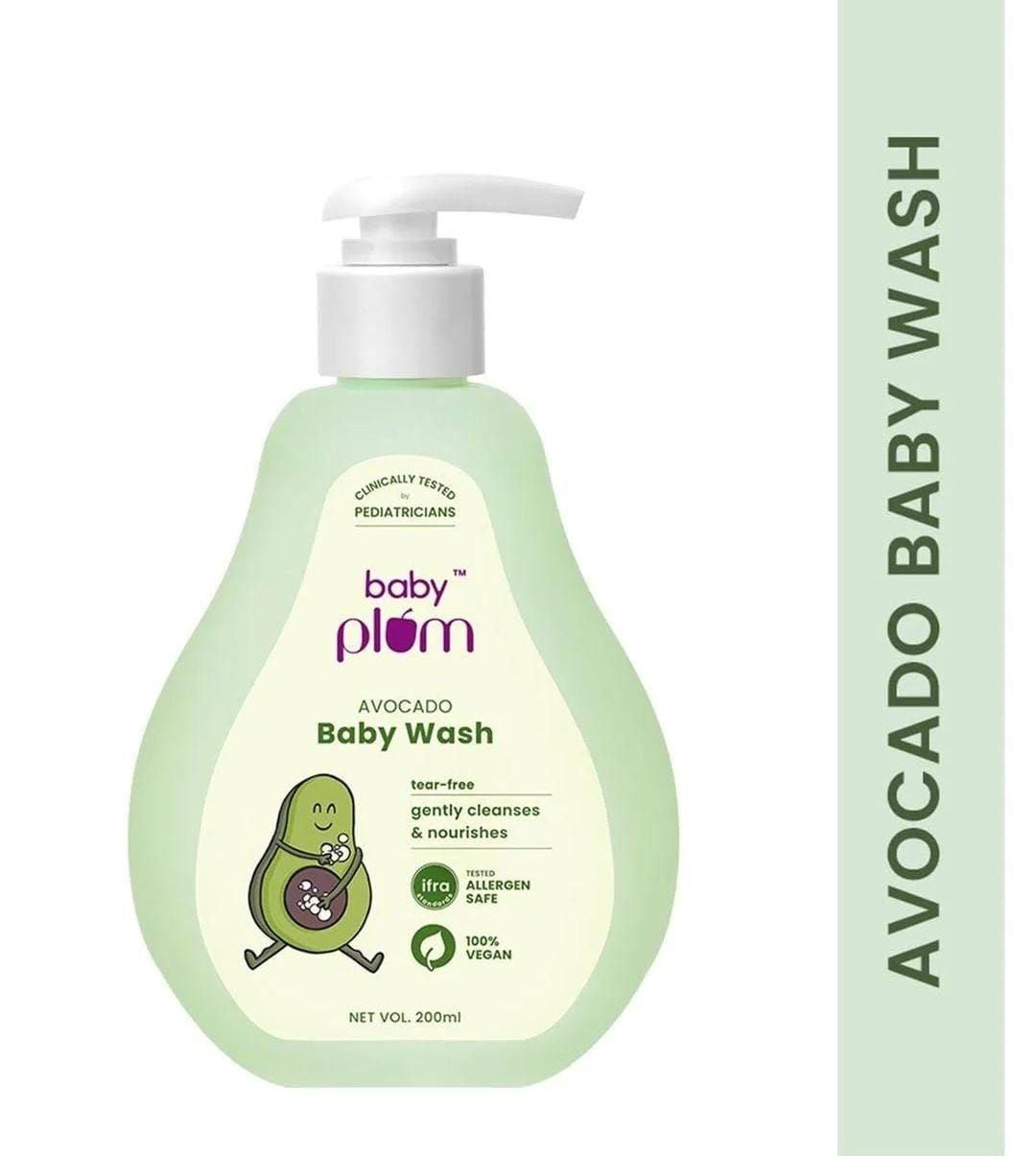 Plum Baby Plum Avocado Baby Wash | Clinically Tested By Pediatricians | Tested Allergen Safe | Enriched With Aloe Extracts & Vitamin B5 | 200 Ml | 0-4 Years